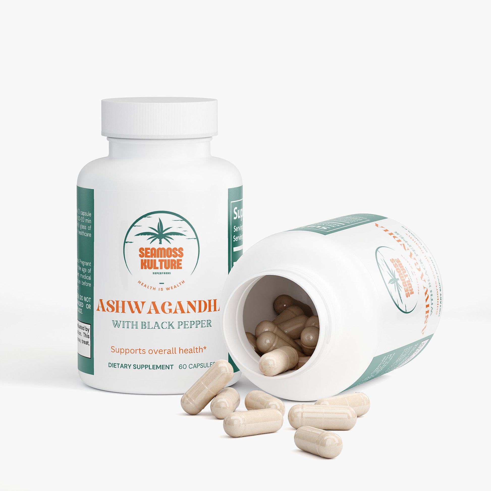 Ingredients: Organic Ashwagandha (Withania somnifera)(root), Organic Black Pepper (Piper nigrum)(fruit), pullulan capsules.