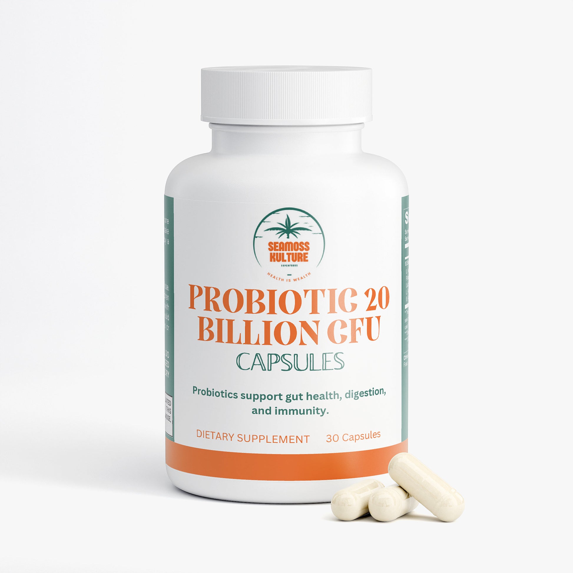 This probiotic dietary supplement is specially formulated to support digestive and immune health through a carefully selected blend of beneficial bacteria. Each capsule contains a robust blend of probiotic strains such as L. Acidophilus, L. Rhamnosus, B. Lactis, among others, complemented by Brown Rice Flour and encapsulated in a vegetable capsule. Designed for daily intake, this supplement aims to enhance the balance of gut flora, promote digestive health, and support the immune system, leveraging the natural benefits of probiotics to improve overall wellness without relying on artificial additives.*